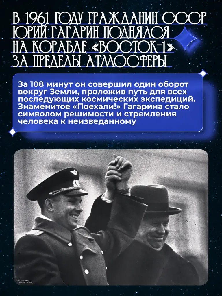 🚀 65 лет назад советский космонавт Юрий Гагарин открыл человечеству дорогу к звёздам.